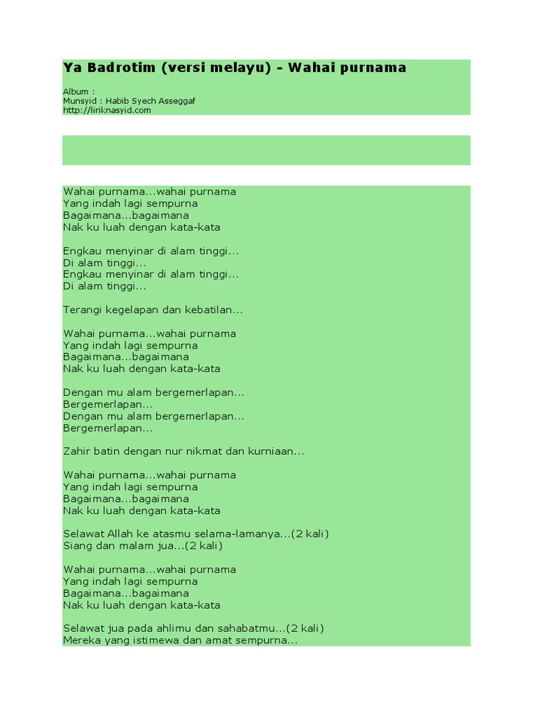 Lirik Nasyid Ya Badrotim Versi Melayu Wahai Purnama Pdf